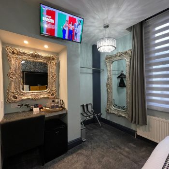 The dressing table has two double plug sockets and a large feature mirror making it ideal for those getting ready for an evening in Southport or for a conference guest to use their laptop while charging up devices such as phone and tablet.